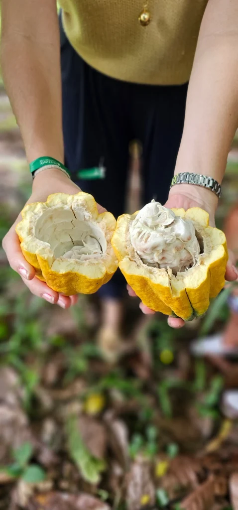 “Caminhar pela Mata Atlântica, provar o cacau in natura, experimentar o mel de cacau bem gelado e entender todo o cuidado envolvido no processo de produção do chocolate mudou completamente minha percepção sobre o território e sobre essa cadeia produtiva”, diz Alice, que complementa: “É uma vivência que conecta natureza, saber local e tempo. Uma experiência que recomendo a todos e que pode ser feita de diferentes formas, inclusive em roteiros de bicicleta.”